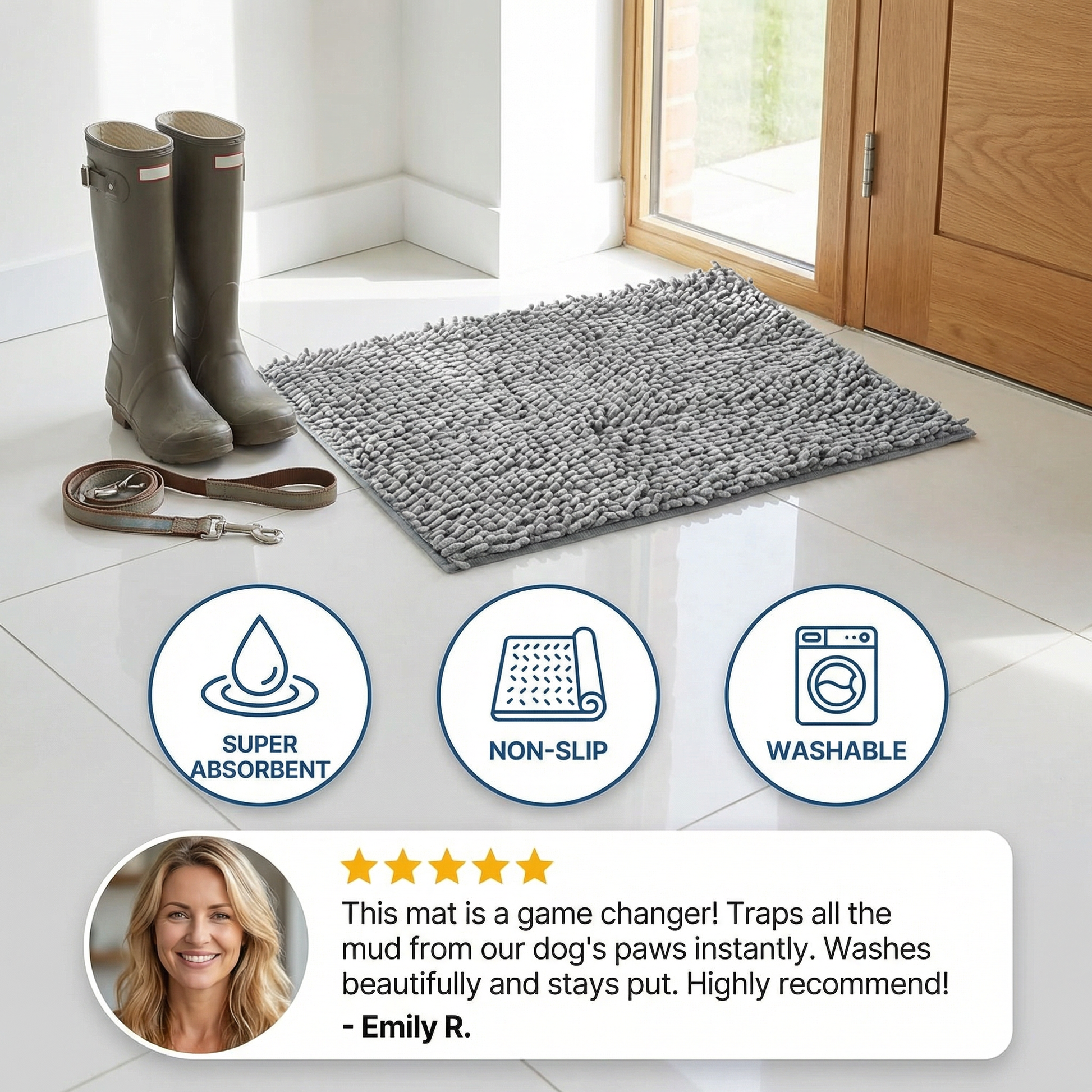 Dirty paw prints, wet floors, and endless cleaning after every walk are frustrating and exhausting. Cheap mats slide around, don’t absorb enough, and leave you right back where you started—cleaning again.