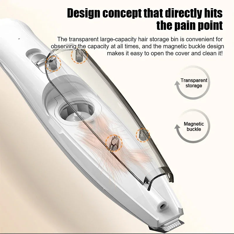 Introducing the ultimate grooming device that combines silent operation with powerful suction technology, ensuring a clean, stress-free experience for both you and your pet. This innovative solution trims and vacuums up loose fur simultaneously, eliminating mess and making grooming faster and easier than ever.