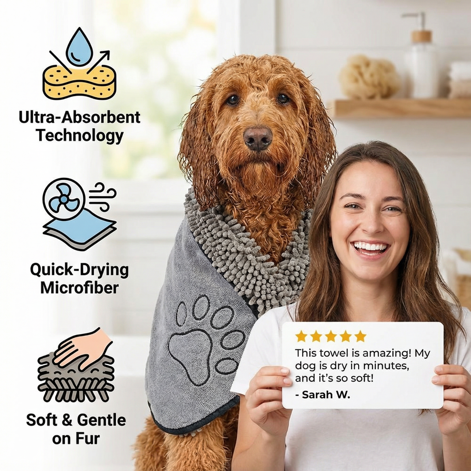 Bath time and rainy walks often turn into wet floors, soaked towels, and stressed pets. Regular towels don’t absorb enough water, take too long to work, and still leave your pet damp and uncomfortable.